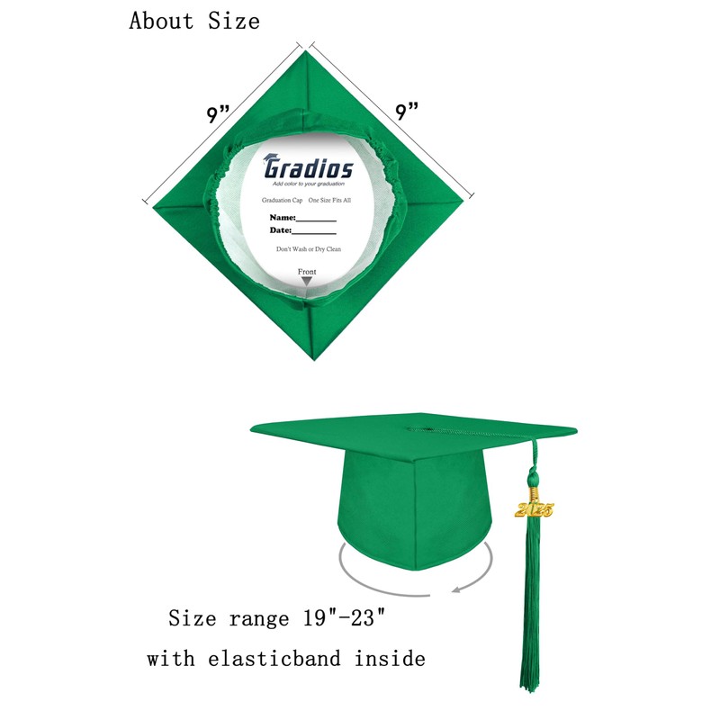 gradois Unisex Adult Matte Graduation Cap with 2025 Tassel Year Charm for High School & Bachelor Master Emerald Green