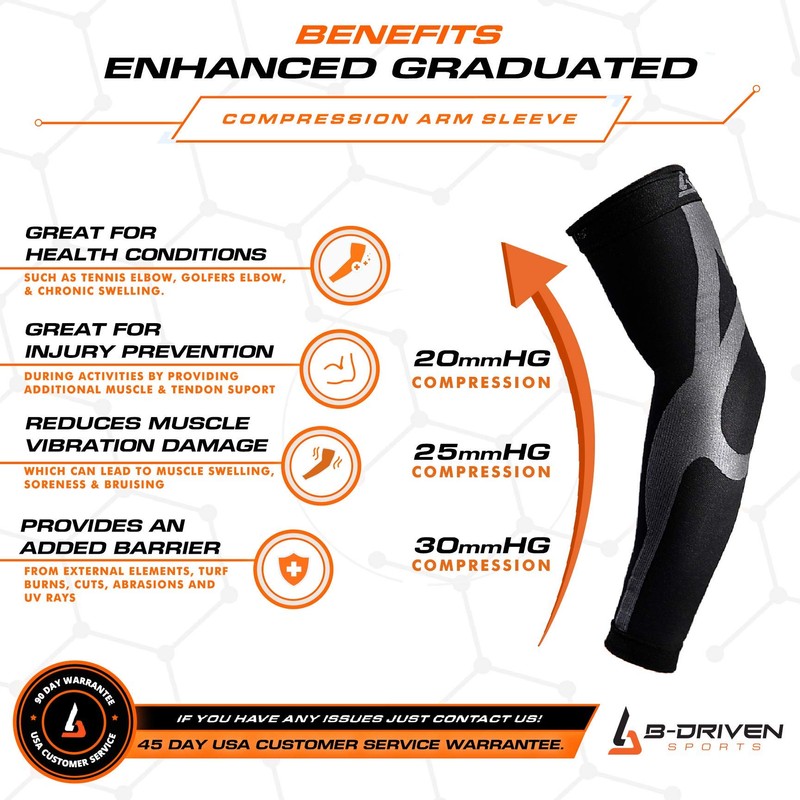 Graduated Compression Arm Sleeve - 20-30mmHG Grade Compression for Men Women
