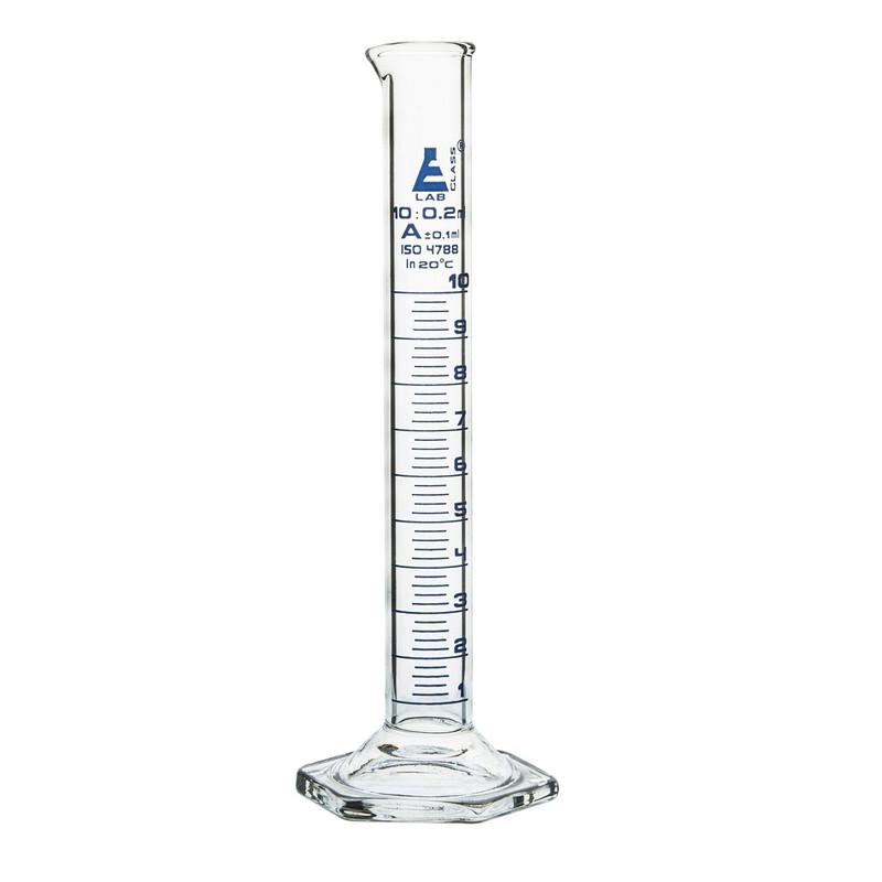 Graduated Cylinder, 10ml - Class A Tolerance ±0.10ml - Hexagonal Base - Blue ...