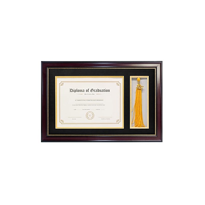 - 【SIZE】Opening size 8" x 10.5" designs to hold 8.5"x11" prints or photos with black over gold double mat. Tassel opening size 2.5"x8" designs to fit traditional tassel length 9". Overall outer demension is approximatly 20" x 13.5" x 1" and the frame mold is 1.25" wide.