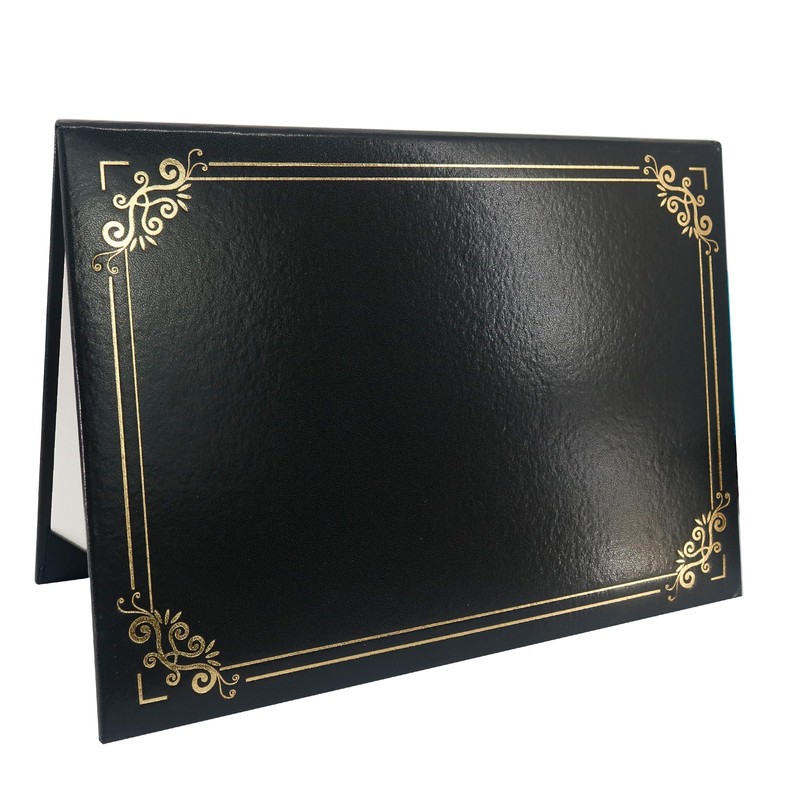 GraduatePro A4 Certificate Folder Golden Edge Certificate Holder Protective Cover Cardboard Diploma Document Cover Black