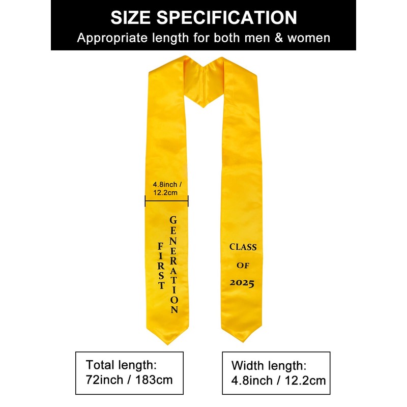 GraduatePro First Generation Graduation Stole 72 Inches Class of 2025 Graduation Stole for High School College Graduates Gold