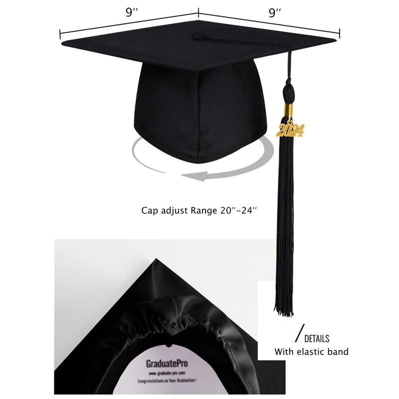 GraduatePro Matte Graduation Cap and Gown Class of 2025 Set Bulk with Tassel ...