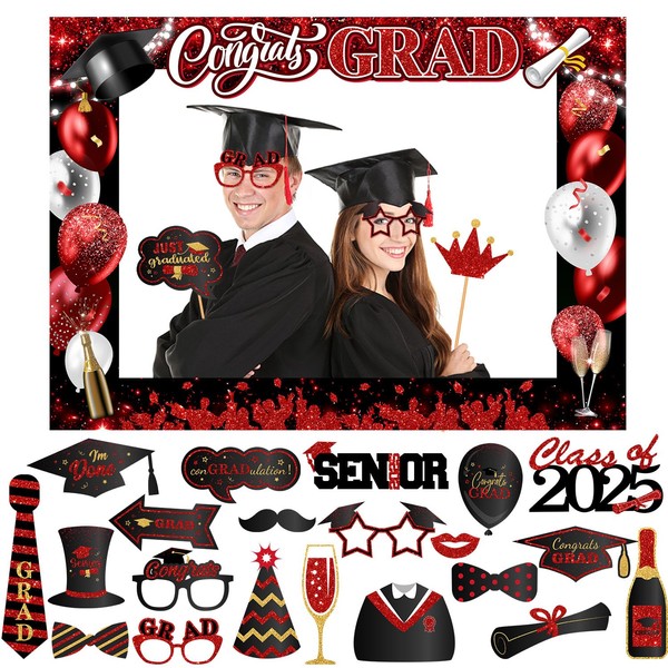 - 【QUANTITU AND QUALITY】1PC congrats grad photo booth frame and 23pcs 2025 graduation photo booth props.The photo booth props decoration is made of high quality.