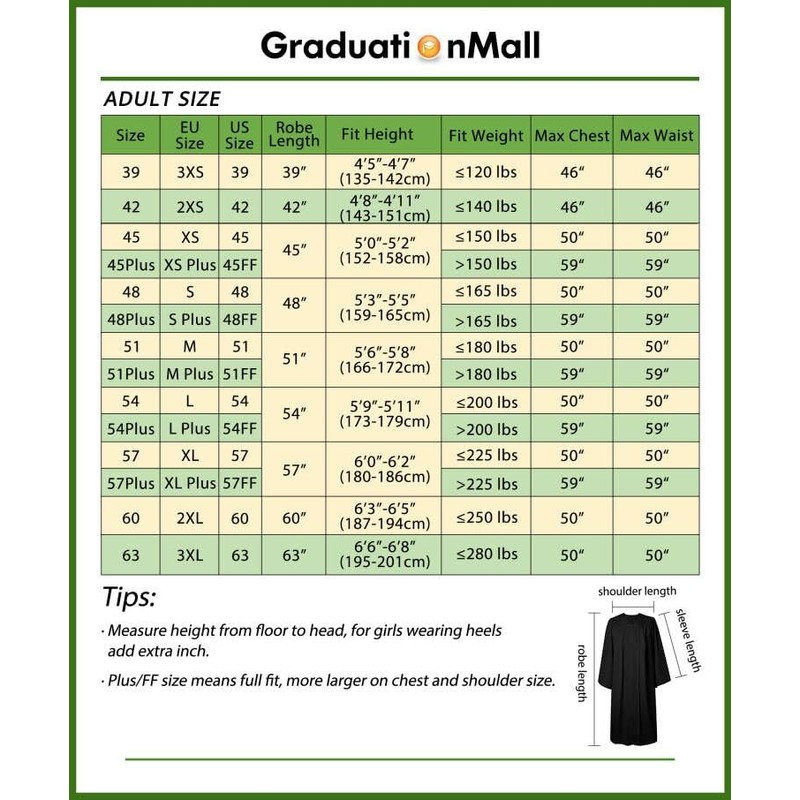 - Gown Size: Robe length 54 inchs, fits height from 5'9" to 5'11", max chest 50 inchs. Note: This is the loose style.
