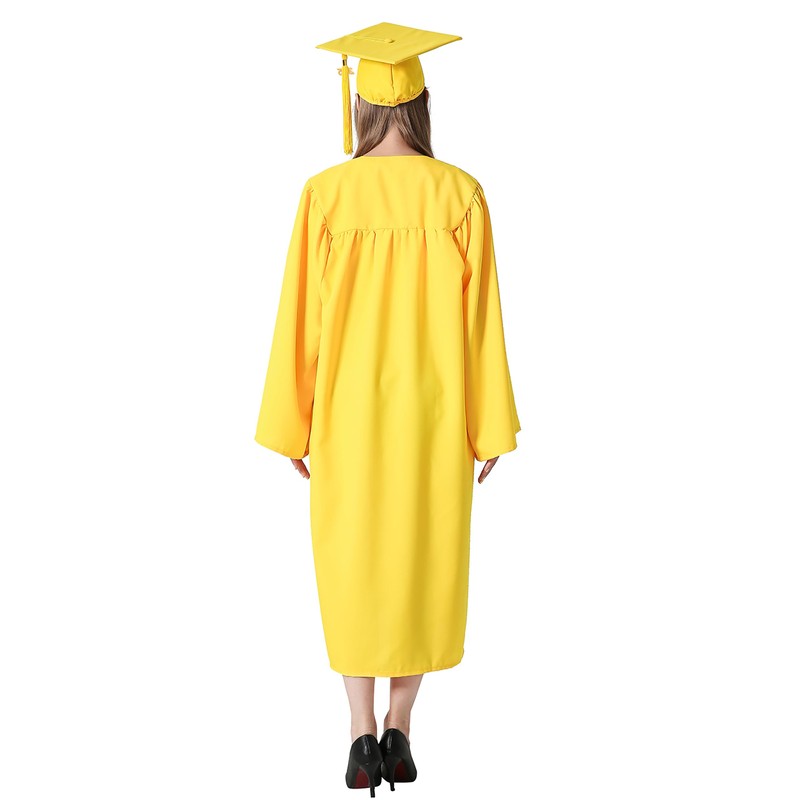 GraduationMall Matte Graduation Gown Cap Tassel Set 2025 for High School and Bachelor Gold 45(5'0"-5'2")