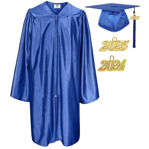 GraduationService Kindergarten Graduation Shiny Gown Cap Tassel with 2018 and 2019 Year Charms Royal Blue