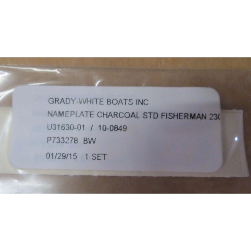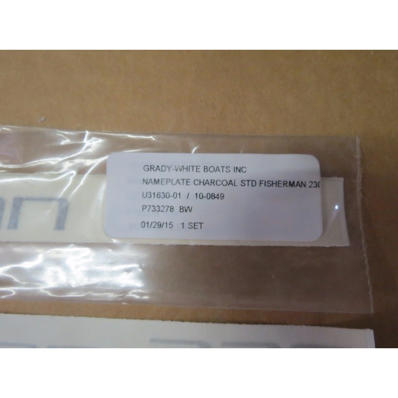 GRADY WHITE FISHERMAN 230 NAMEPLATE CHARCOAL STD DECAL SET 8-7/8" x 1/2 #10-0849