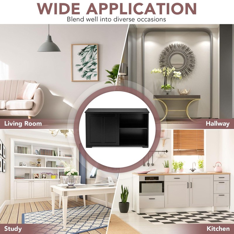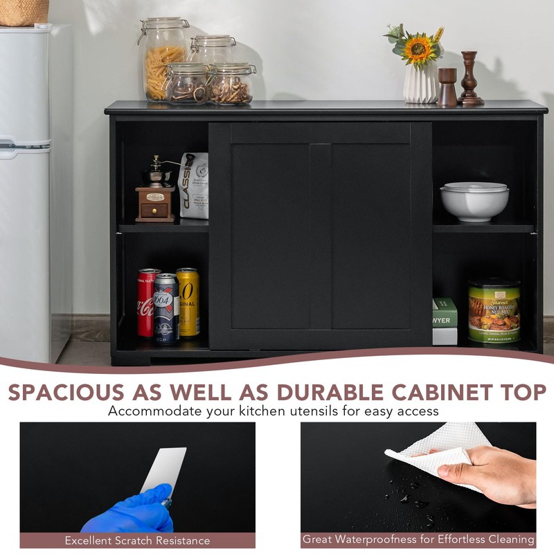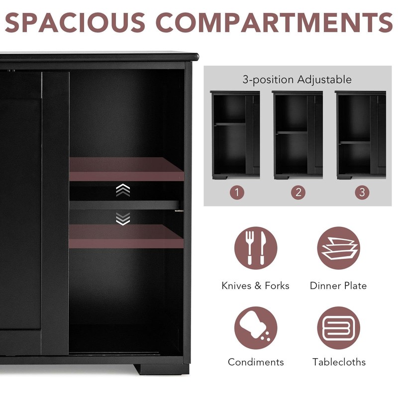 - Smooth Sliding & Height Adjustable: Features with two doors running on smooth slide, our buffet storage cabinet is easy to open and close fluently. In addition, this kitchen cabinet has a height adjustable shelf inside, which can be adjusted up and down to 3 height positions for better use of space and create a clean environment.