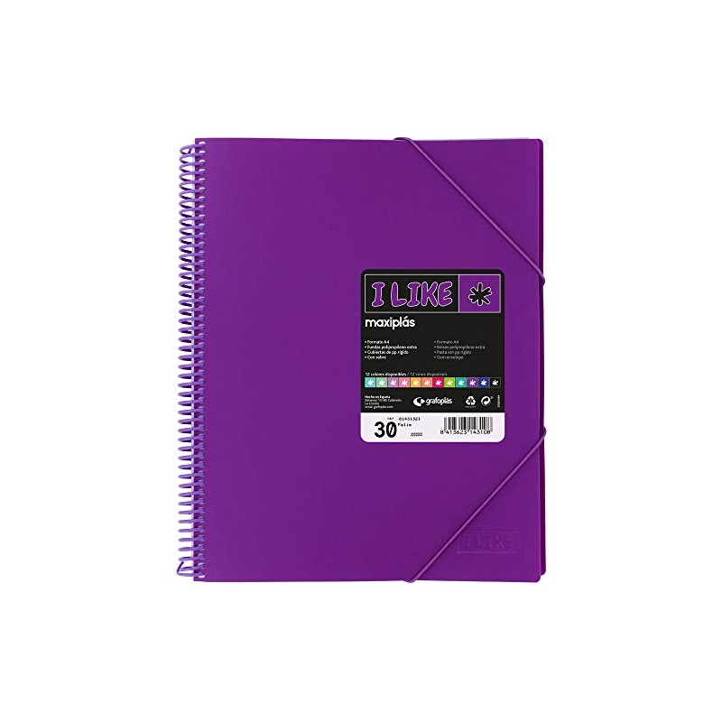 Grafoplás 39823235 Binder with 30 Transparent Spiral Covers, Purple A4, Rigid Opaque Polypropylene Covers, Maxiplas Like