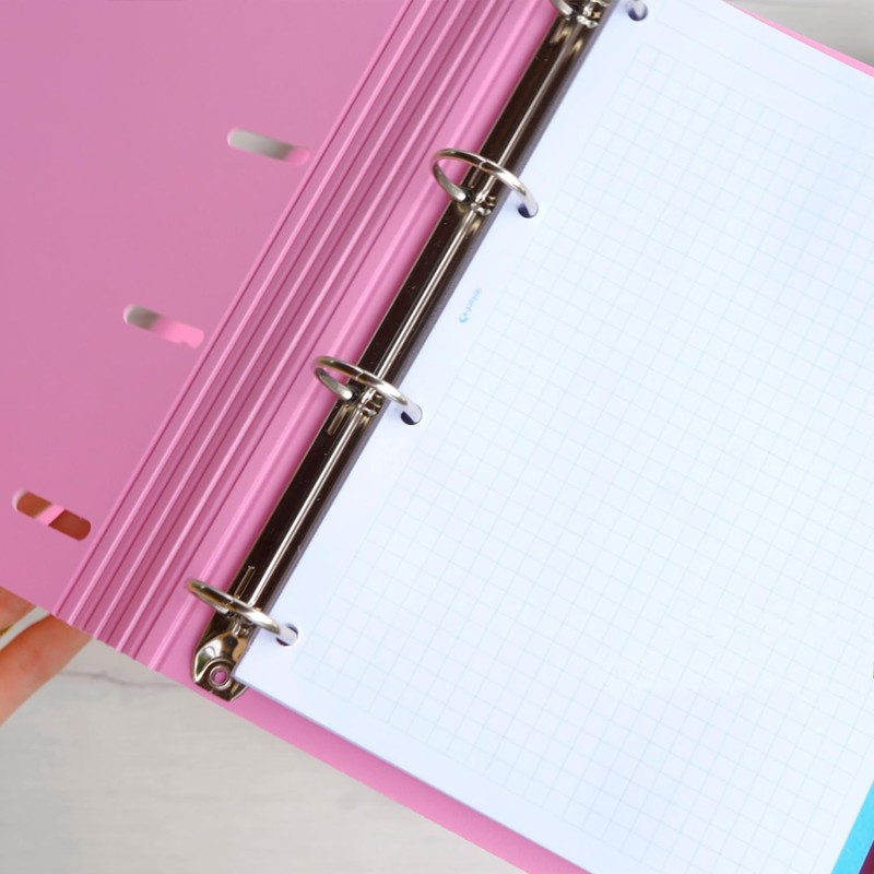 Grafoplas 4 Ring Binder A5 Polyfoam Strong Ultra Light Minimalist Pink with Refill Round Rings 25mm Perfect for School Supplies