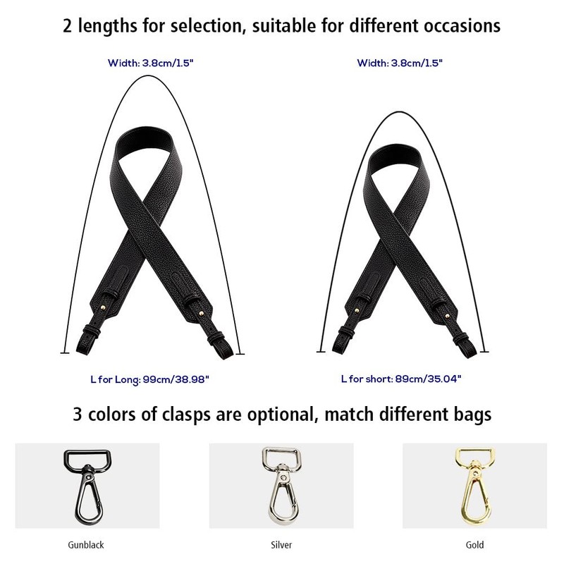 •-Strap Dimension: Two lengths for selection: Short type: L:35.04"-38.98"(89cm-99cm), W:1.5"(3.8cm); Long type: L:38.98"-42.91"(99cm-109cm), W:1.5"(3.8cm)