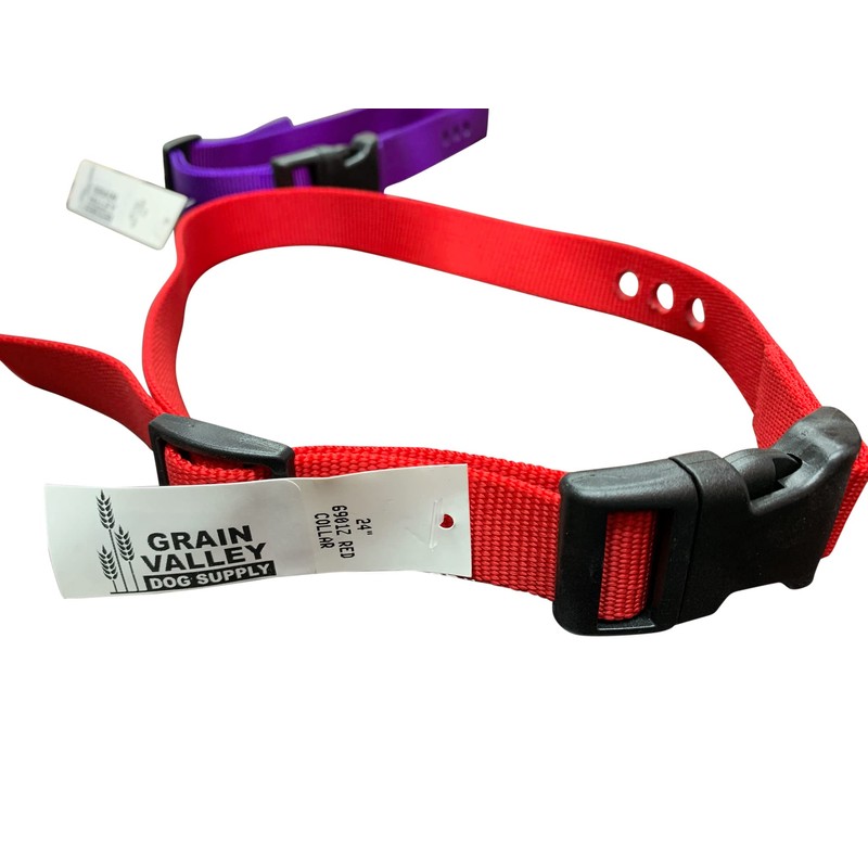 Grain Valley Dog Supply Replacement Strap - Fits Most PetSafe Collars - 3 Pre Cut Holes - 1" Nylon Includes eOutletDeals Pet Travel Bowl (Red)