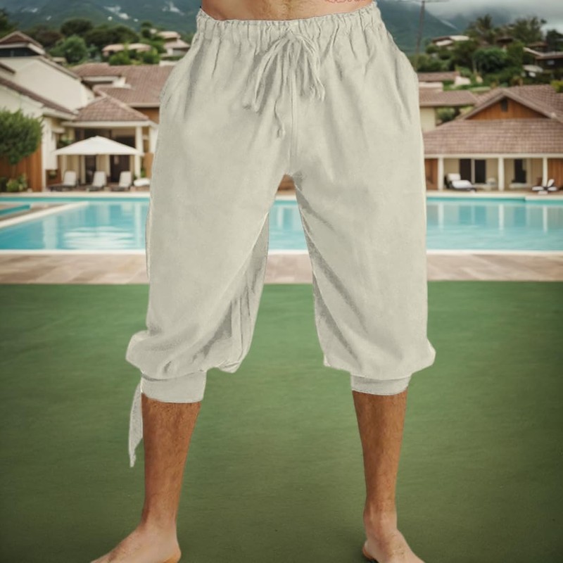 GRAJTCIN Mens Medieval Pirate Linen Costume Shorts Renaissance Viking Lace Up Cosplay Pants (Size M, Beige)
