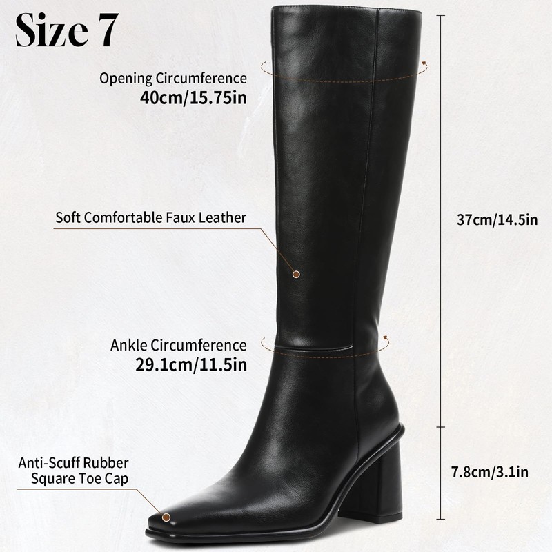 • ⚠️【Anti-Slip Tread & Arch Support】The **3.1-inch chunky heel** and non-slip rubber sole offer all-day stability, while the reinforced arch support keeps your feet comfortable in these long boots.