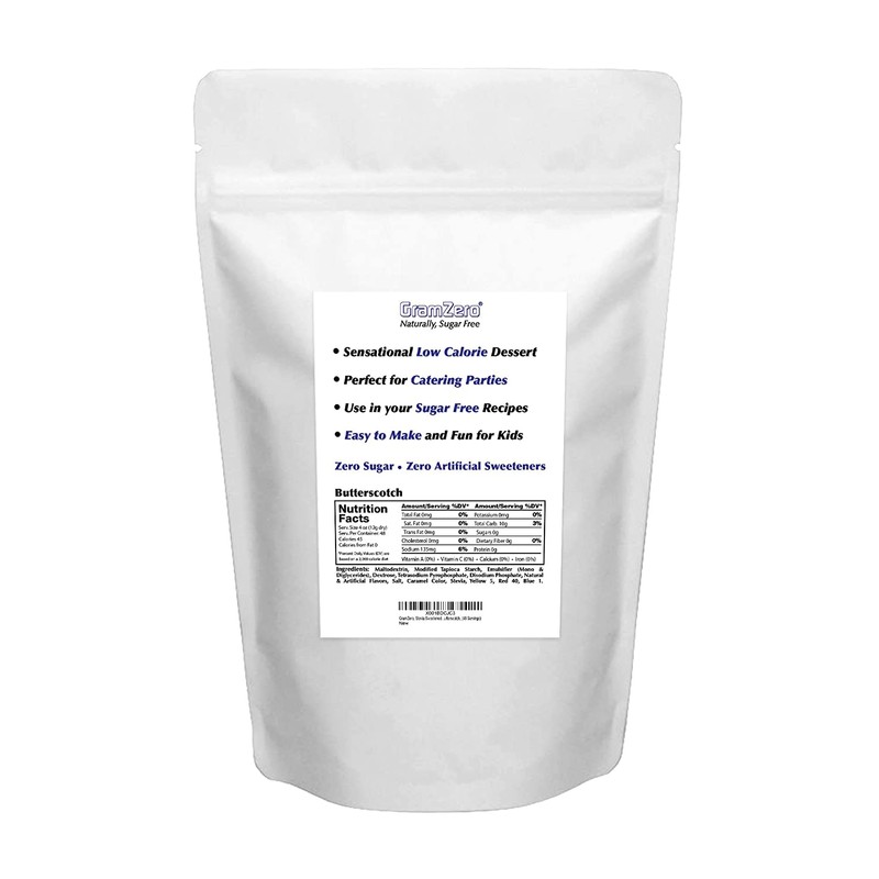GramZero Butterscotch Pudding Mix, 12/16 oz Yield (Makes 48 - 4 oz servings), Stevia Sweetened, SUGAR FREE