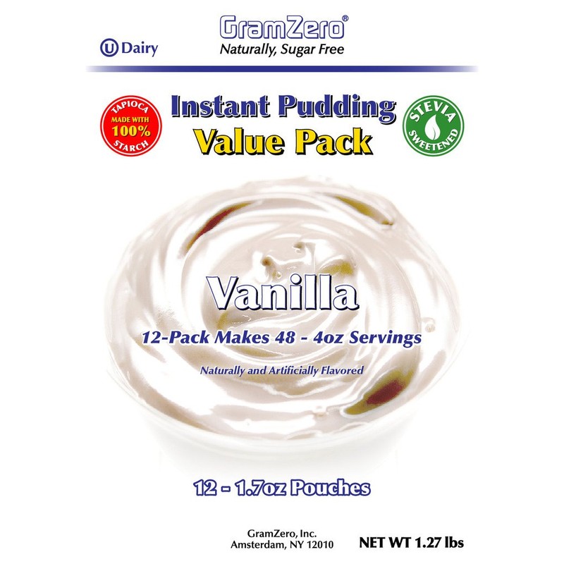 GramZero Vanilla Sugar Free Pudding Mix 12-Pack, Great For Nutrition Club Meal Replacement Shakes, Low Calorie Dessert, Stevia Sweetened