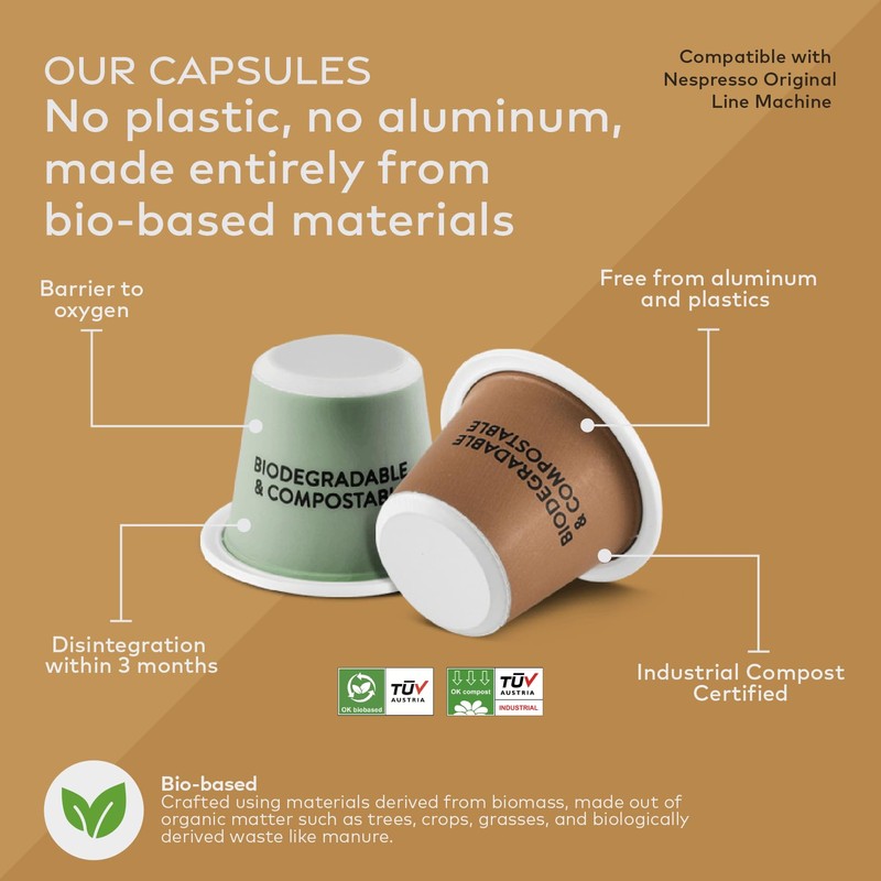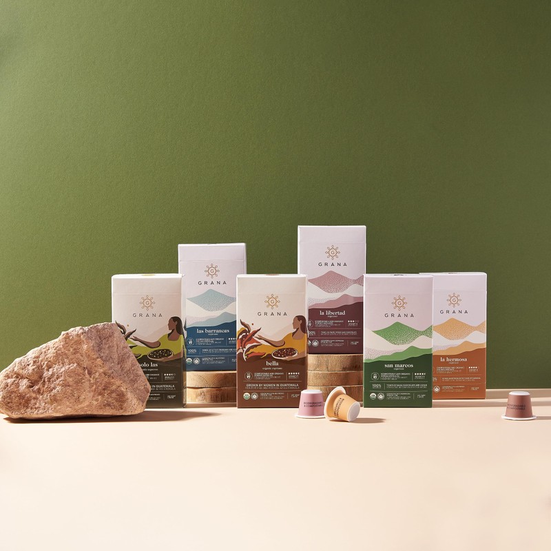 As a small family business, Grana oversees every step of the process. With no intermediaries, our team is involved in the hand-selection of organic beans all the way to their final sale around the world. Using only single-origin coffee, we believe that great coffee is the result of ethical practices that align with evolving customer needs. Roberto, Grana’s founder, reached out to coffee experts, farmers, tasters, and baristas in an attempt to create coffee pods that resonated with what he and the modern world were looking for exclusively organic, high-quality, and sustainable capsules. Your brew has been carefully selected from small-lot organic farms in Guatemala that respect the environment, its soil, and your health. Grana capsules are compatible with Nespresso original line machines and Dolce Gusto machines. ABOUT OUR 4 PACK Try our 2 different coffee and certified OK Compost by TÜV Austria varieties San Marcos and Las Barrancas. Most importantly, each variety was chosen specifically by our customers, for our customers, each with a different story to tell! *Certified OK compost INDUSTRIAL by TÜV Austria through September 2024 Registration #: S0520