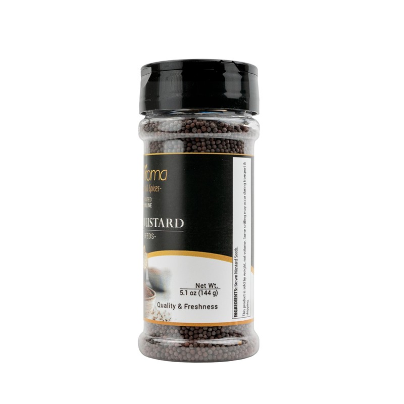 - GranAroma Brown Mustard Seeds in a convenient shaker jar