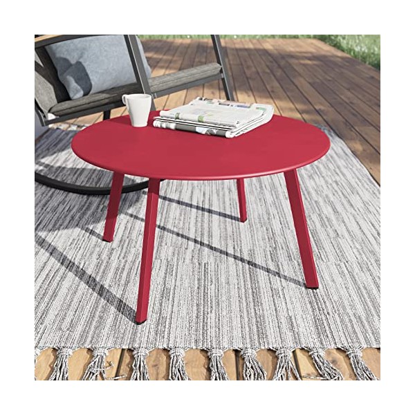 Grand Patio Round Outdoor Coffee Table, Weather Resistant Metal Large Side Table for Balcony, Porch, Deck, Poolside, Dark Red