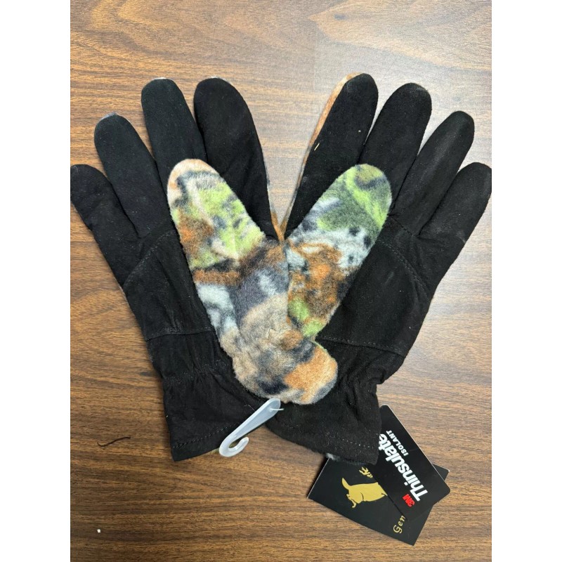 Grand Rapids Hide Company Camo Fleece Gloves with Black Deerskin Leather Palm, Thinsulate Lining, LARGE