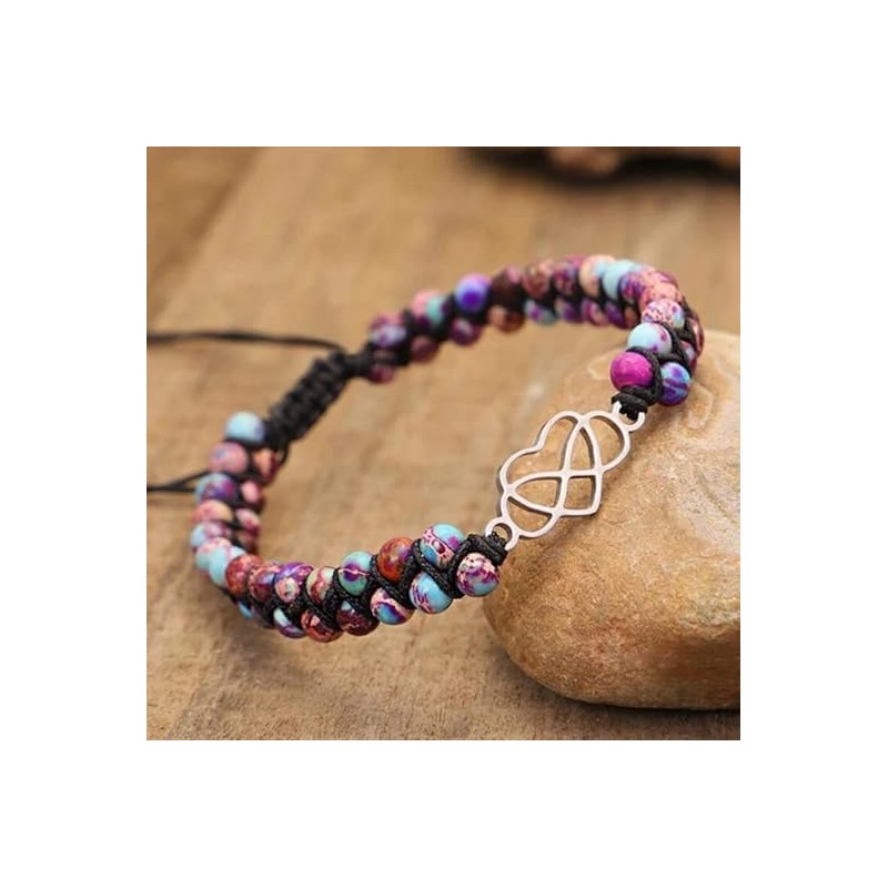 Granddaughter Bracelet From Grandma, Heart Granddaughter Bracelet Stone Beads Infinity Double Layer Dainty Adjustable Wrap Granddaughter Bracelet For Women Jewelry (Purple)
