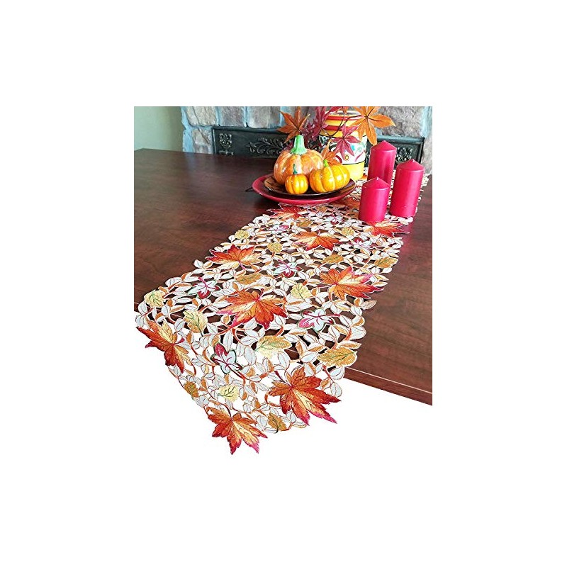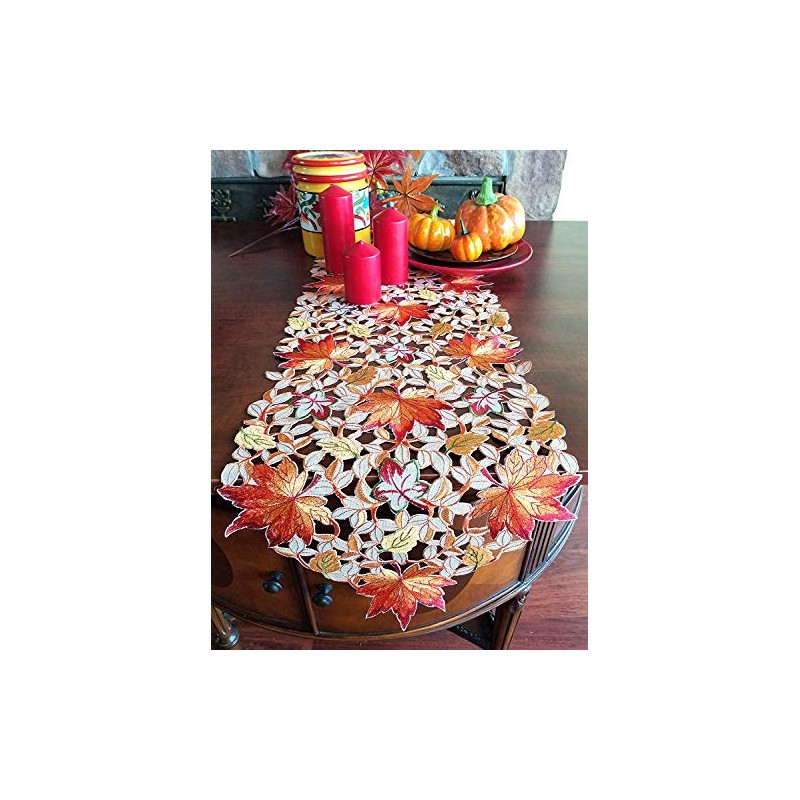 GRANDDECO Camino de mesa de cosecha de Acción de Gracias, bordado de hojas de arce para vestidor, bufanda, decoración de otoño u otoño (camino de 33 x 172 cm, hojas de arce 2)