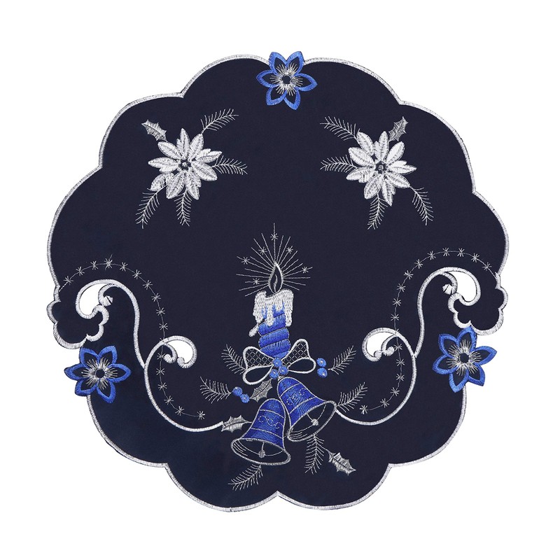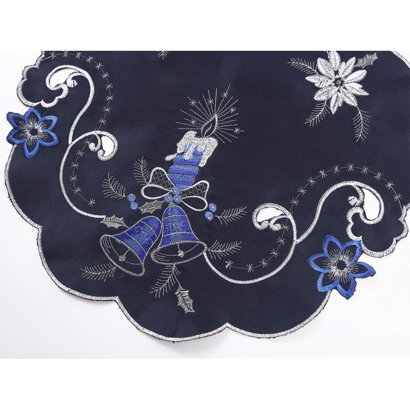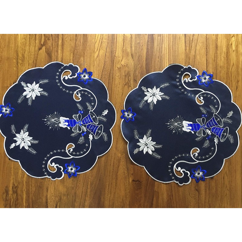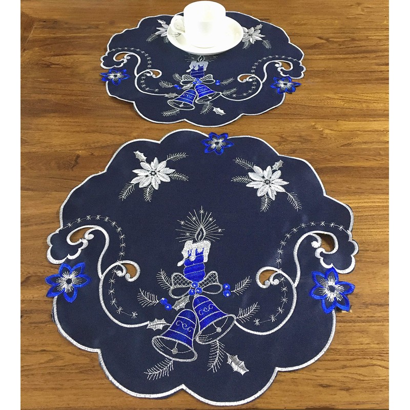 GRANDDECO Holiday Christmas Placemat 14" Set of 4, Cutwork Embroidered Floral Christmas Blue Candles Dresser Scarf Table Topper for Home Dining Xmas Tabletop Decoration