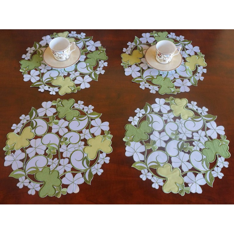 GRANDDECO St. Patrick's Day Placemats Set of 4,Applique Embroidered Cutwork Clover Table Topper for Home Kitchen Dining Spring Holiday Tabletop Decoration, Placemat 14" Set of 4, Green