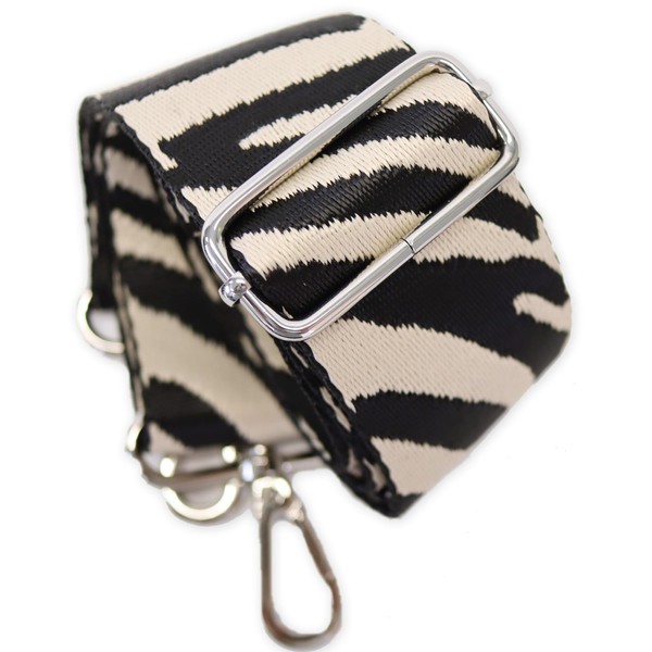 Grande Grace Shoulder Strap, Single Item, Width 2.0 inches (5 cm), Bag Strap, Zebra / Silver Hardware