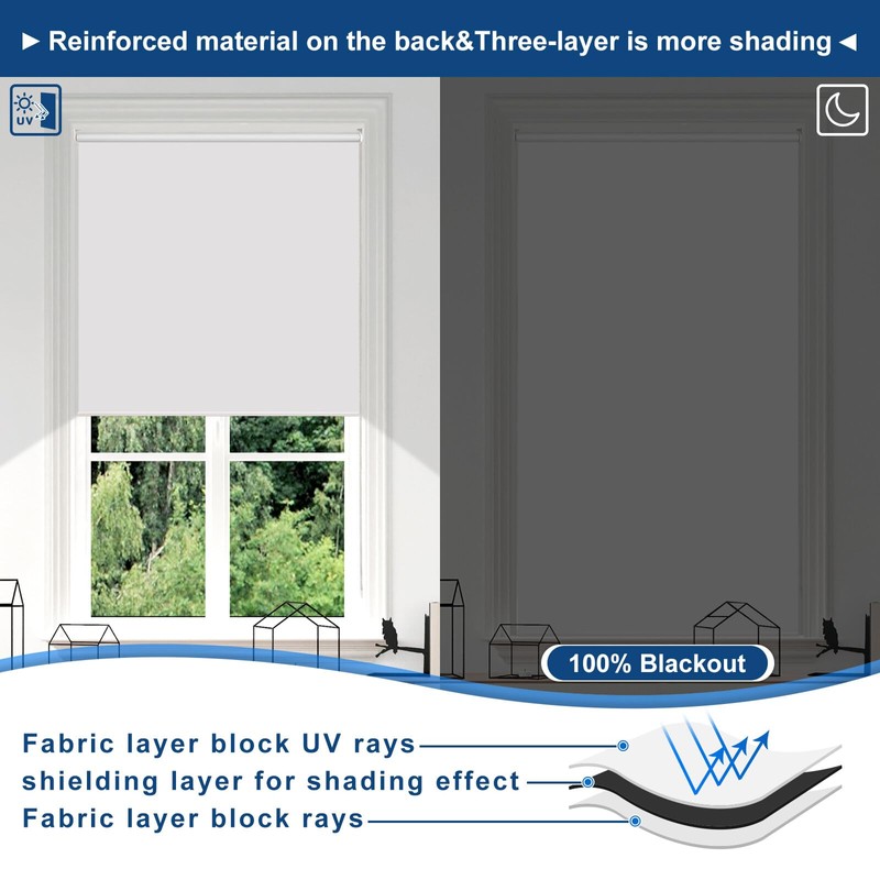 - 【Block the sun's rays】 100% Blackout, Polyester fabric with an adhesive backing layer, not only can better isolate external noise and temperature, but also block the sun's rays