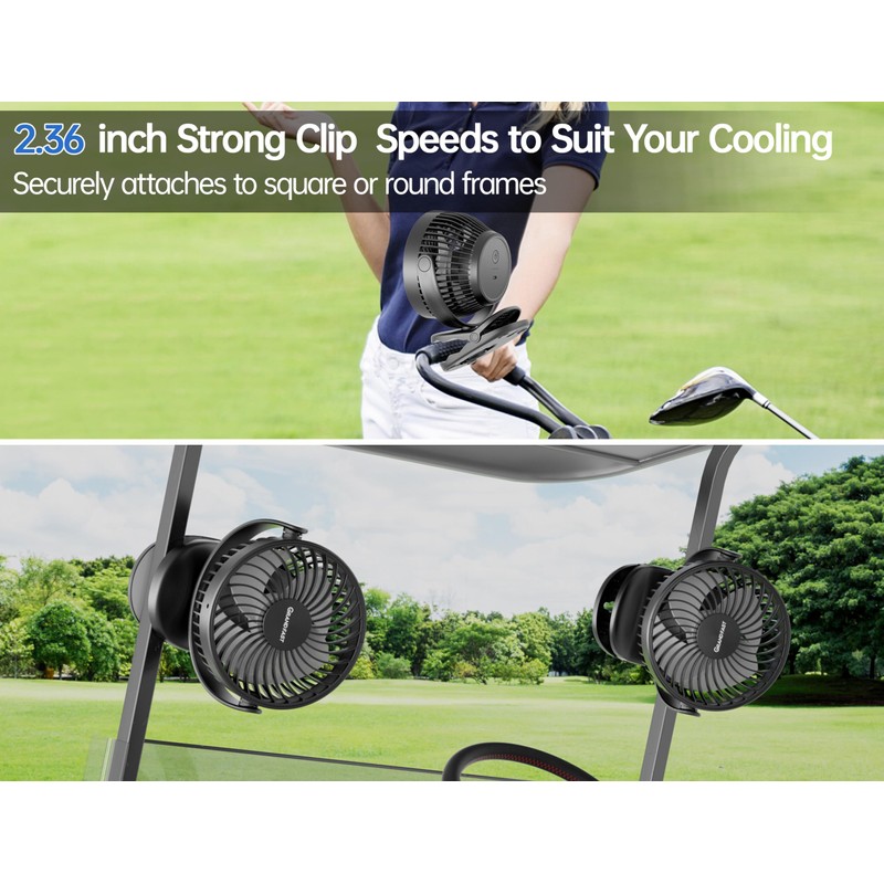 - More Stable: Featuring a 2.36-inch strong clip, this clip on fan securely attaches to square or round frames of golf carts like EZGO, Club Car, or Yamaha and golf push carts, staying firmly in place even on rough terrain