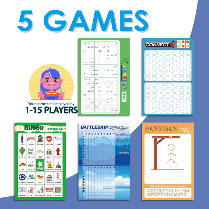 - Smart Design: Great selection of 5 classic paper and pencil games for on the go or at home. 75 sheets total come in a 6" X 9" kids activities pads with instructions. Each individual sheet could be easily tear off for play without destroying the whole pad.