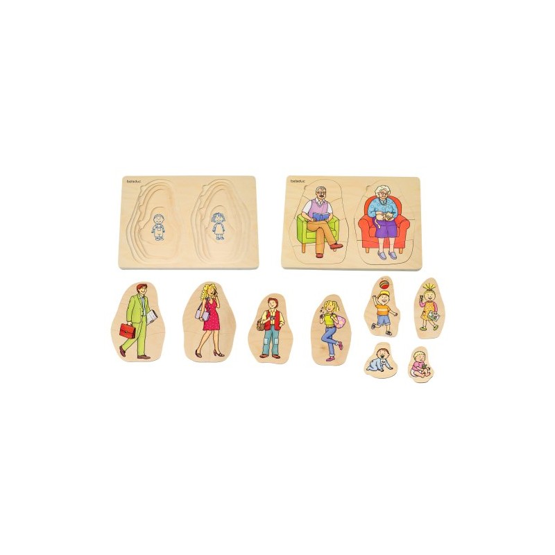 - Enthält: Dieses Puzzle der Generationen besteht aus 6 verschiedenen Schichten, die es dem Kind ermöglichen, die verschiedenen Etappen des Lebenszyklus zu lernen: Von Bambin bis Älterer muss das Kind die Teile miteinander verbinden und diese auch überlagern und ihnen helfen, ihre Kombinations- und Kombinationsfähigkeit zu verbessern und gleichzeitig zu spielen.