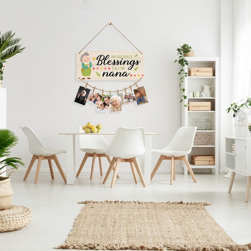 - PACKAGE INCLUDES:A wooden board sign with two thin cords and eight small clips,the length of the photo wall board sign is 29.9cm/11.77in,the width is 13.9cm/5.47in,the thin cords on the top of the wooden board sign can hang it on the wall or anywhere you want to hang it,and the clips of the thin cords on the bottom of the sign sign sign can hang and display the photos you want to display.