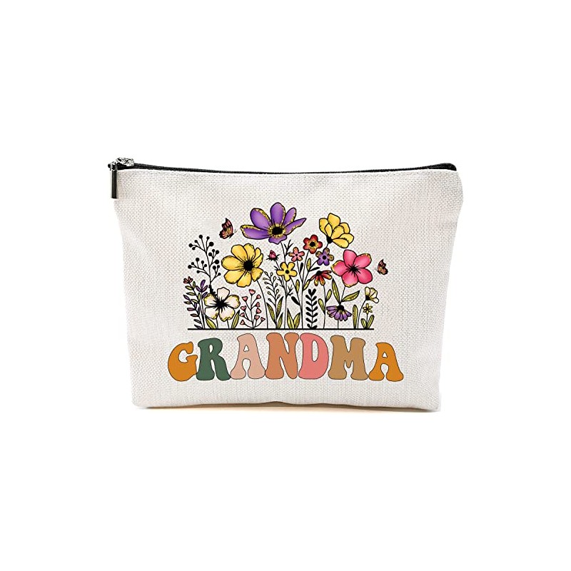 Grandma Wildflowers Gifts For Mother's Day Makup Bags - Grandma Flower Gift Bags - Mom Grandma Birthday Gifts - Travel Cosmetic Bag For Birthday, White, 7”x9.8”