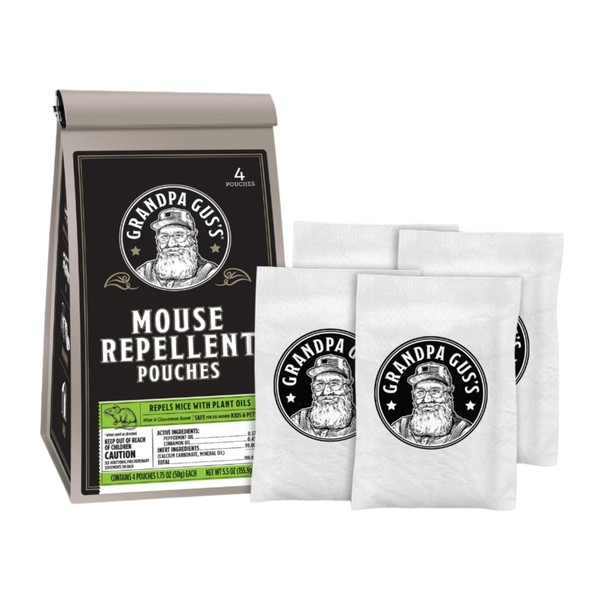 Grandpa Gus's Extra-Strength Mouse Repellent Pouches, Cinnamon/Peppermint Oils Repel Mice from Nesting & Freshen Air in Car/RV/Boat/Garage/Shed/Cabin (Pack of 4)