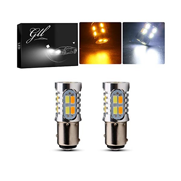 Grandview 2pcs Super Bright 400LM 1157 BAY15D Amber/White Switchback Turn Signal LED Light Bulbs 5730 20SMD 12V LED Replacement Light 7528 1196 1016 1034 6500K-8000K