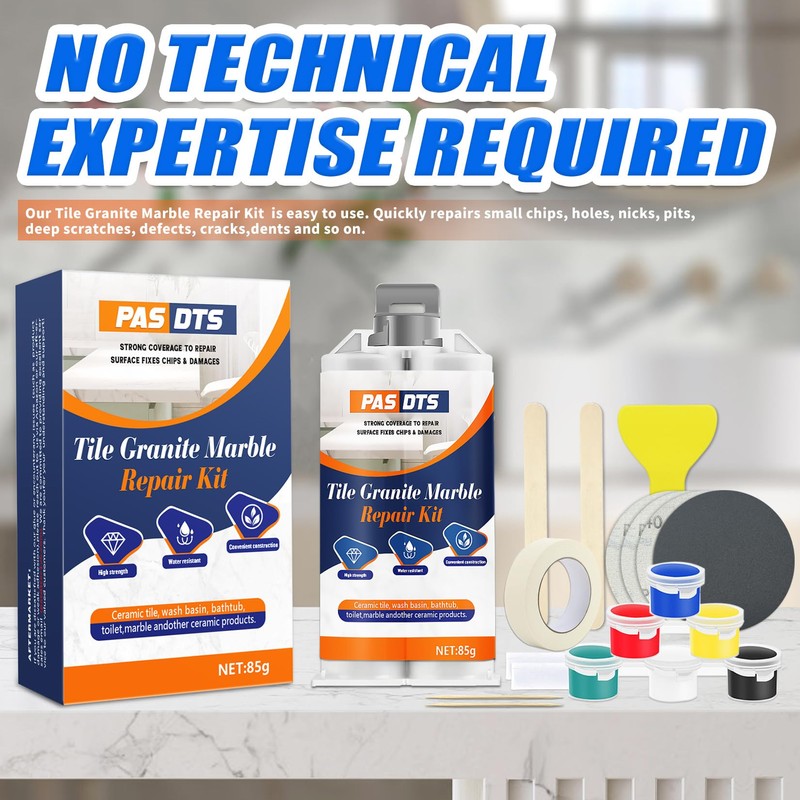 - Complete Bathtub Repair Kit: Our Porcelain Repair Kit provides you with a comprehensive, worry-free repair package. It includes 1 x 85g repair agent, 1 x white pigment paste, 1 x black pigment paste, 1 x golden yellow pigment paste, 1 x red pigment paste, 1 x blue pigment paste, 1 x green pigment paste, 1 x scraper, 1 x sticker, 4 x sandpapers, 2 x plastic gloves, and 2 x wooden stir sticks. The granite repair kit is easy to use and quickly restores your granite countertop, saving you valuable time and money.