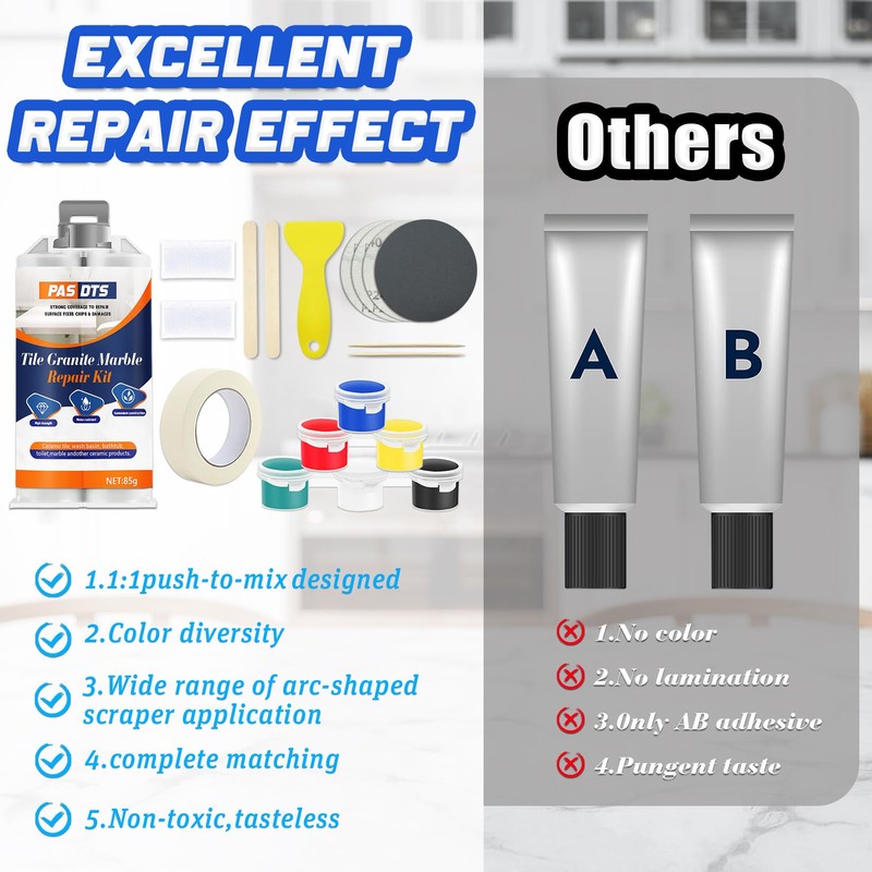 - Works on Various Stone Surfaces: Designed for use on marble, granite, quartz, and other natural stone surfaces. Perfect for fixing cracks, chips, and scratches on countertops, tiles, and floors.