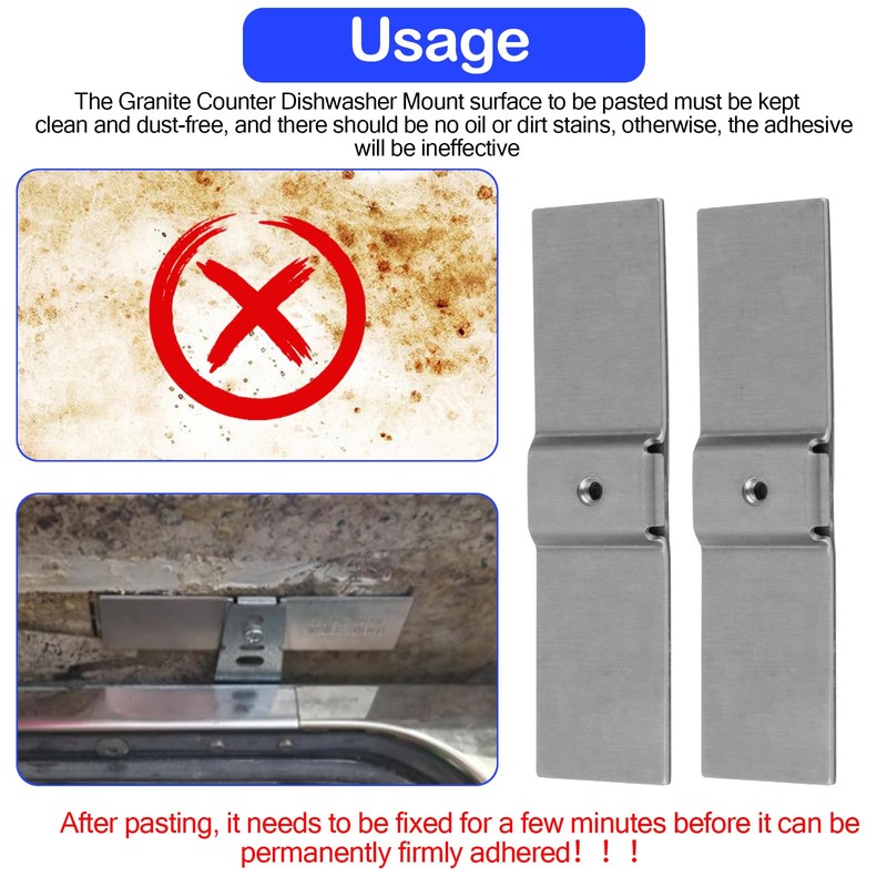 - 【Usage】The Granite Counter Dishwasher Mount surface to be pasted must be kept clean and dust-free, and there should be no oil or dirt stains, otherwise, the adhesive will be ineffective, After pasting, it needs to be fixed for a few minutes before it can be permanently firmly adhered!!!