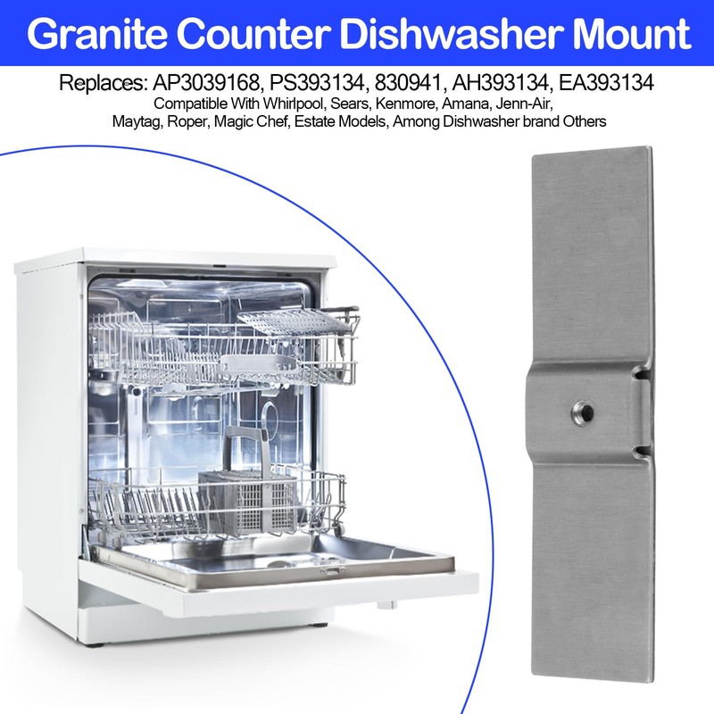 - 【Granite Counter Dishwasher Mount】Replaces: AP3039168, PS393134, 830941, AH393134, EA393134. Compatible With Whirlpool, Sears, Kenmore, Amana, Jenn-Air, Maytag, Roper, Magic Chef, Estate Models, Among Dishwasher brand Others.