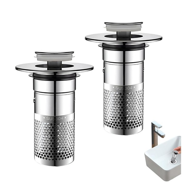 Granmagazz 2 Piece Sink Strainer, Drainage Strainer, Garbage Receptor, Hair Catcher, Washbasin Net, Stainless Lid, Easy to Clean, Washbasin Pop-up, Drain Plug, Washbasin, Garbage Catcher, Clogging