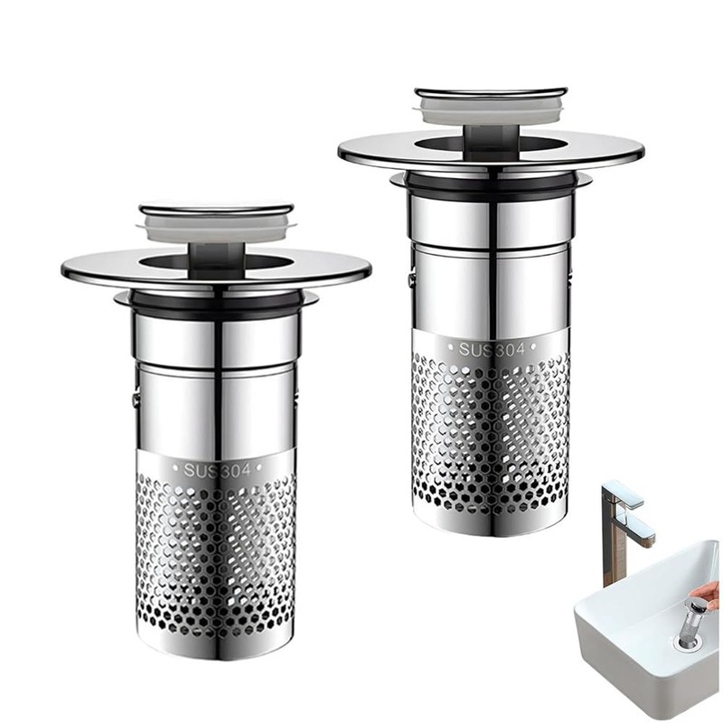 - [UNIQUE DESIGN]: This sink drain strainer hair catcher is uniquely designed to catch hair and prevent bathroom sink clogging. Features a pop-up mechanism and removable stainless steel basket for ideal convenience
