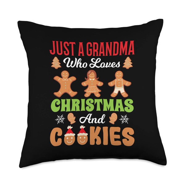 Granny Cookie Baking Fanatic Festive Quote Just a Grandma who Loves Christmas and Cookies Throw Pillow, 18x18, Multicolor