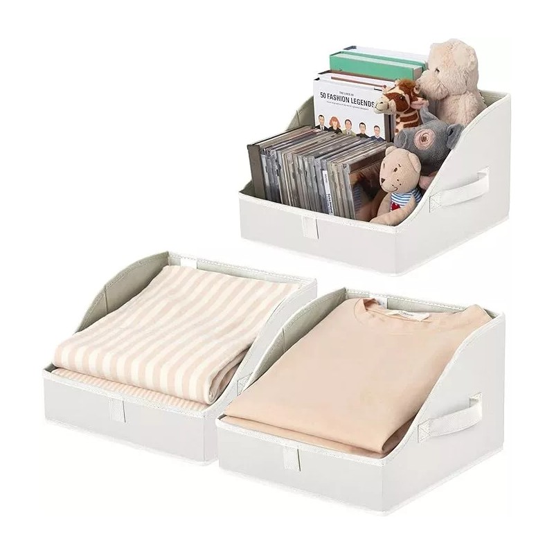 - Versatile Storage - Trapezoid design lets finding things convenient, also allows easy access when put on the top shelf. Ideal closet storage bins for storing clothes, bags, yarns, toys, DVDs, linens, and more.