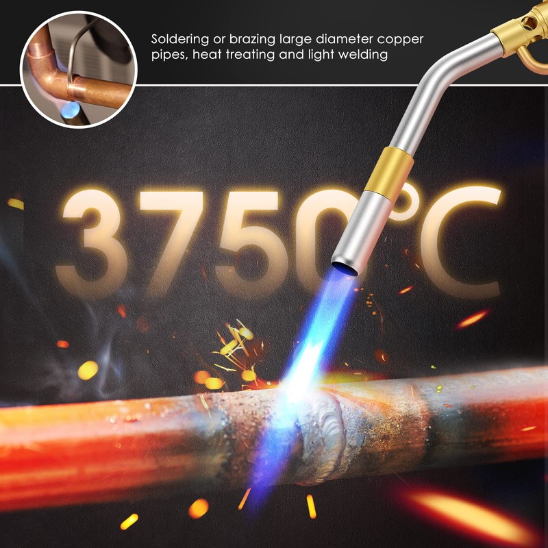 - 👨🏭【High Intensity Swirl Flame】The propane torch provides high temperature blue flame with propane fuel (flame burns at 3600F) or MAPP Gas (flame burns at 3730F), output maximum focused heat for large diameter brazing, welding, and soldering projects