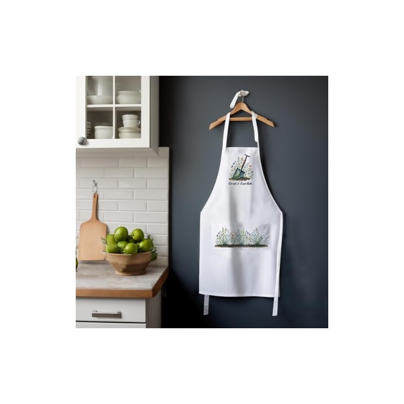 - A special gift for any Grans who love to garden! This lovely apron features a floral design, surrounding a garden shovel with text reading 'Gran's Garden'.