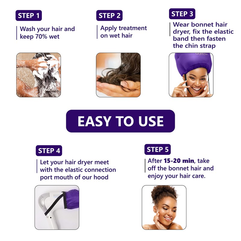 - Save Time And Effort - These versatile hair-dryer bags slide over your head and secure firmly to start drying your hair rapidly while keeping your hands free to handle other things in the bathroom; all to make mornings a little bit easier.