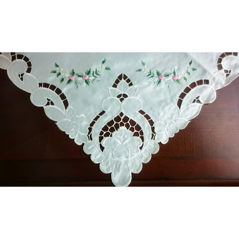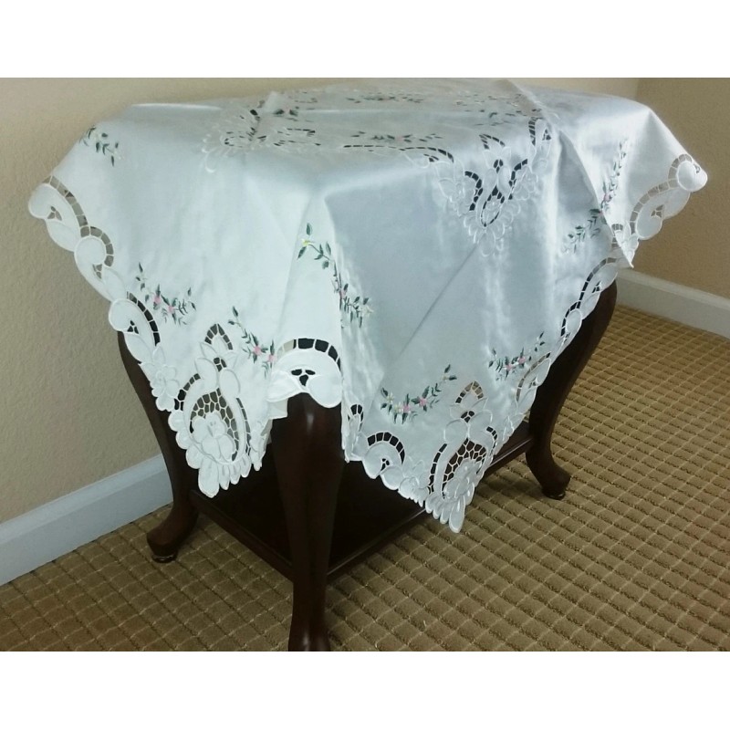grantlinen Ivory Embroidered Handmade Rose bud Cutwork Embroidery 33" Square Tablecloth
